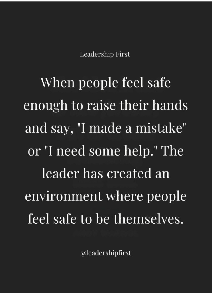 When a leader creates an environment in which people feel secure enough to raise their hands and ask for assistance, it demonstrates that they value their team’s well-being and are genuinely invested in their success. This can be achieved by encouraging open communication, providing constructive feedback, and leading by example. In conclusion, creating a safe and supportive work environment is essential for empowering employees to be themselves and to reach their full potential. When people feel comfortable enough to admit their mistakes and ask for help, it can ultimately lead to a more productive and successful team.