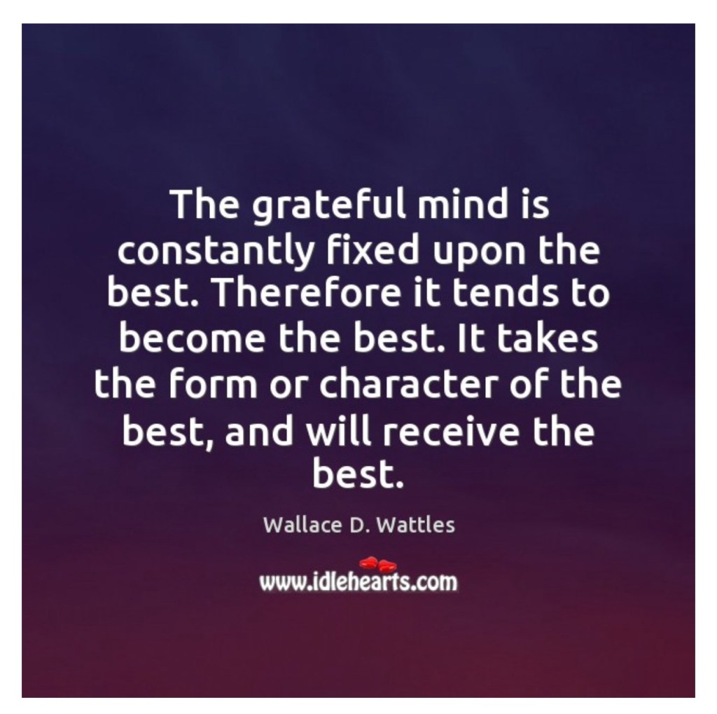 “The grateful mind is constantly fixed upon the best. Therefore it tends to become the best.”