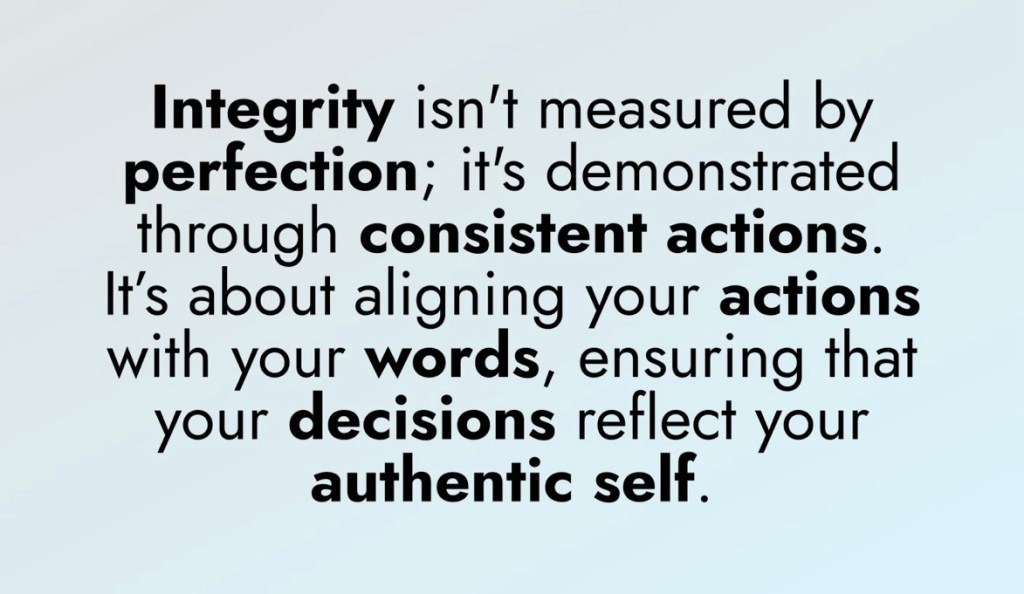 Integrity isn’t measured by perfection; it’s demonstrated through consistent actions. It’s about aligning your actions with your words, ensuring that your decisions reflect your authentic self.