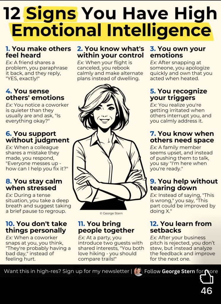 Emotional intelligence helps with reading social cues, responding thoughtfully to others’ needs and managing emotional responses