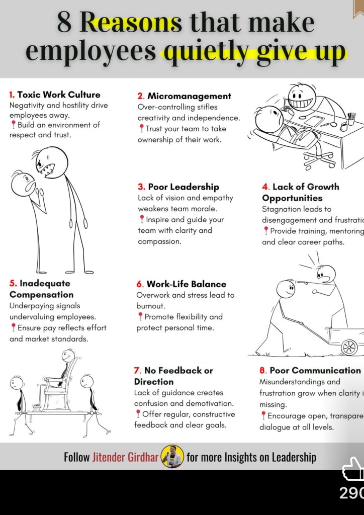 These 8 Reasons that make employees quietly give up. When the passion fades and the motivation disappears, it’s easy to overlook.