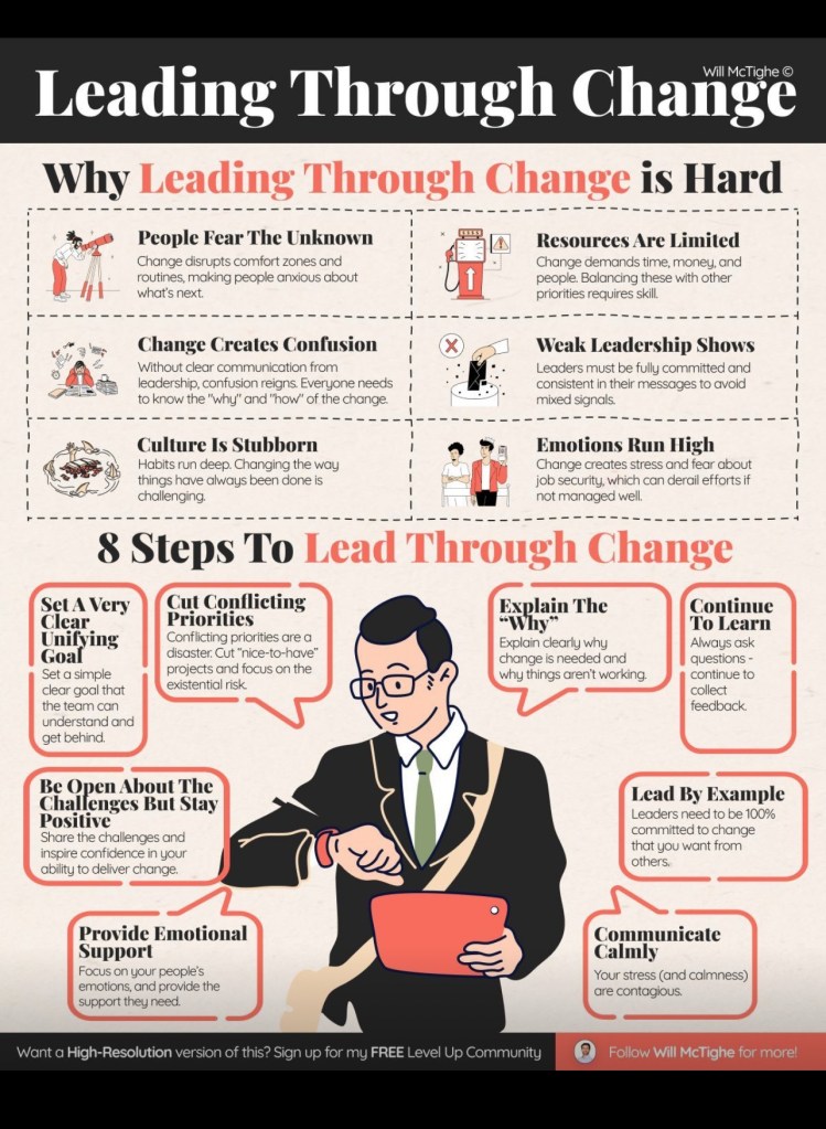 Effective change leaders create a compelling vision, foster a collaborative culture, and provide consistent support to overcome resistance and maintain momentum post-change.