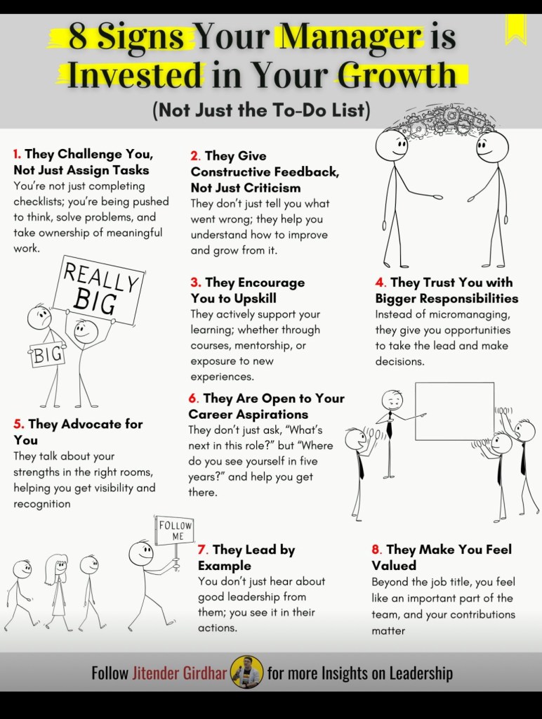 ↳ They actively support your learning; whether through courses, mentorship, or exposure to new experiences. - They Trust You with Bigger Responsibilities