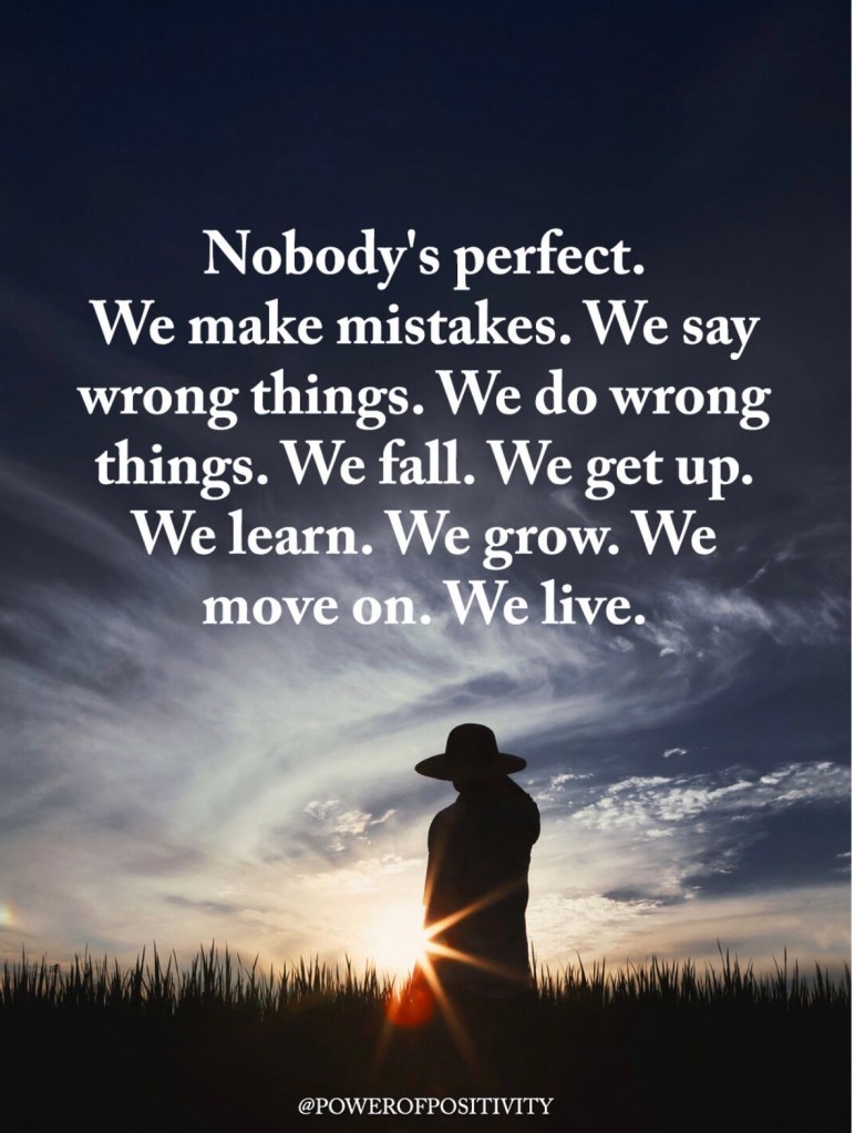 Let’s be honest: Nobody’s perfect. We are all works in progress. We stumble, we make mistakes, and sometimes we say or do the wrong things. That’s not failure; that’s simply being human.
