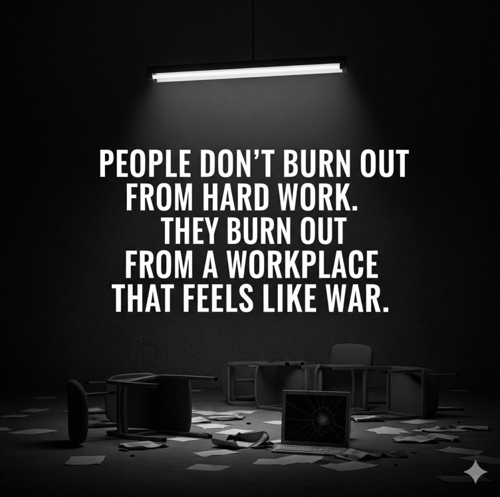 Hard work, when fueled by purpose and support, is fulfilling. But navigating a landscape of office politics, lack of trust, and constant psychological “combat” drains the spirit faster than any deadline. True leadership means brokering peace. It’s about building a sanctuary where talent can thrive without armor. Protect your team’s peace.